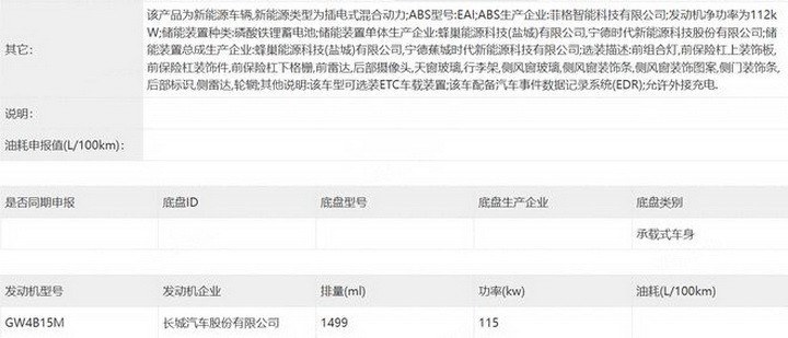 动力方面,哈弗腾龙将搭载由1.5T涡轮增压发动机+电池+电机组成的插电式混动系统,其中发动机最大功率为115kW,而电池方面则采用磷酸铁锂电池组。其余动力参数暂未公布,但作为一款插混SUV,预计在纯电续航里程、亏电油耗等方面均会有不错的表现。